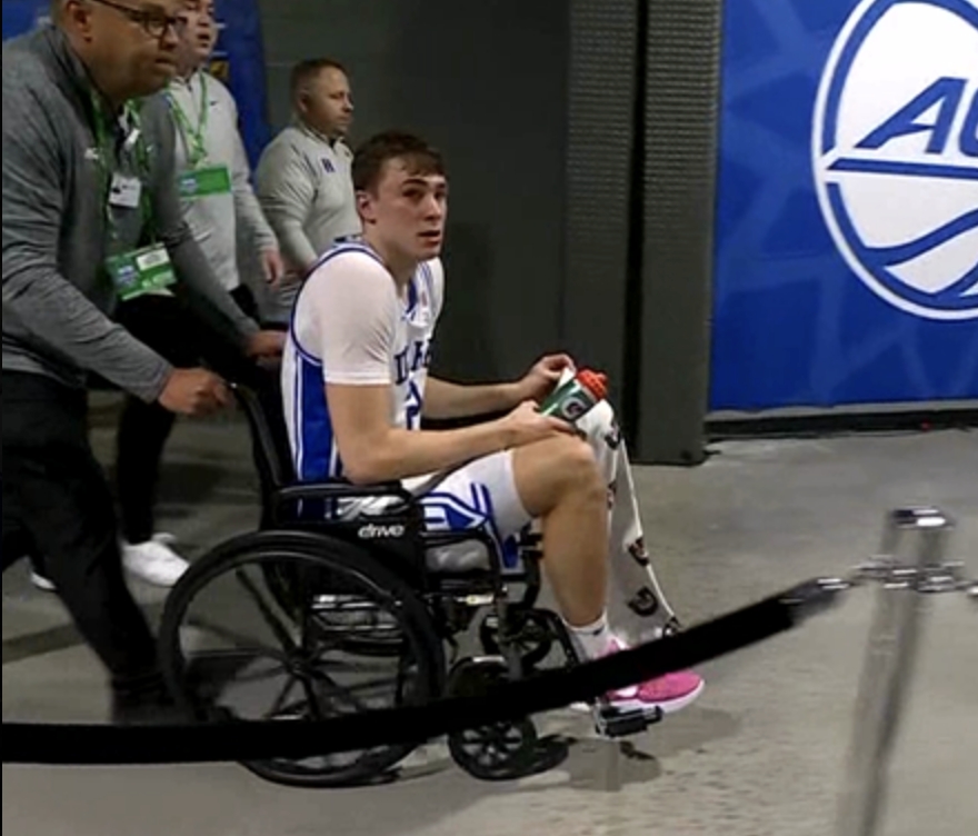 3月14日,ACC分區(qū)錦標(biāo)賽1/4決賽,杜克大學(xué)對(duì)陣佐治亞理工學(xué)院上半場(chǎng),弗拉格在搶籃板落地時(shí)踩到對(duì)手恩東戈的腳上扭傷腳踝,他起身后被攙扶著走到場(chǎng)邊,之后坐著輪椅離場(chǎng),在接受檢查之后自行走回球隊(duì)替補(bǔ)席,下半場(chǎng)沒(méi)有出戰(zhàn)。