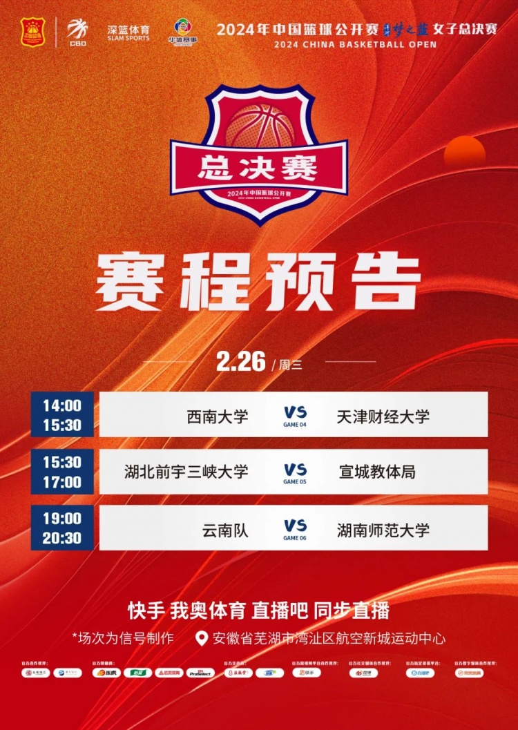 2月25日,2024年中國(guó)籃球公開賽洋河夢(mèng)之藍(lán)女子總決賽在安徽省蕪湖市灣沚區(qū)航空新城運(yùn)動(dòng)中心打響。在首輪進(jìn)行的三場(chǎng)比賽中,云南隊(duì)、西南大學(xué)、湖南師范大學(xué)取得開門紅。