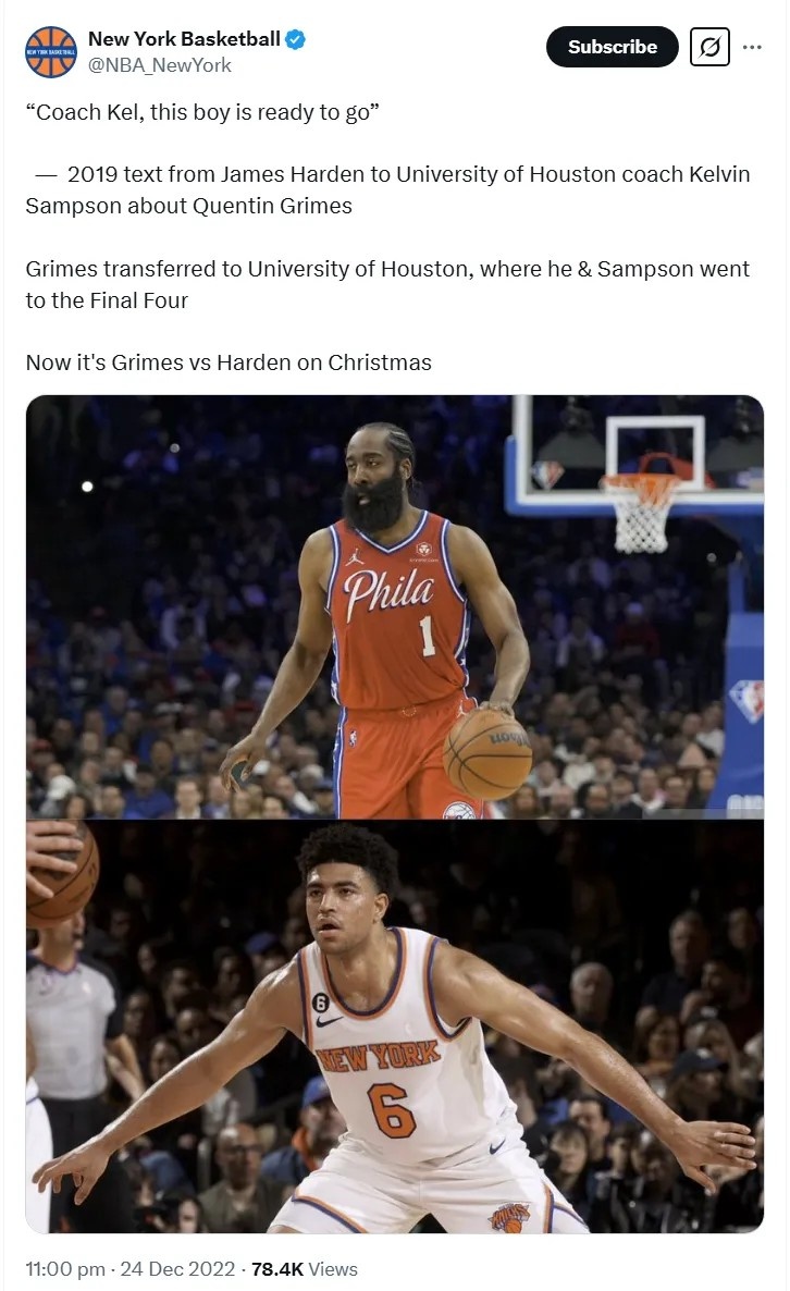 在休斯敦期間,格萊姆斯的擋拆防守和后場(chǎng)籃板能力大大提高了,這兩項(xiàng)后來(lái)成為了他在NBA的立足之本。2021年選秀大會(huì),他在首輪第25順位被尼克斯摘走——對(duì)于曾經(jīng)被看好拿下前五順位的天才來(lái)說(shuō),這個(gè)結(jié)果多少有些讓人失望,但格萊姆斯心態(tài)很好,這得益于他在學(xué)生時(shí)代一直養(yǎng)成的性格,格萊姆斯堅(jiān)信,就算兩年前他以高順位進(jìn)入NBA,該學(xué)的東西還是要從頭學(xué)起,從一個(gè)較低的起點(diǎn)出發(fā)不一定是壞事。