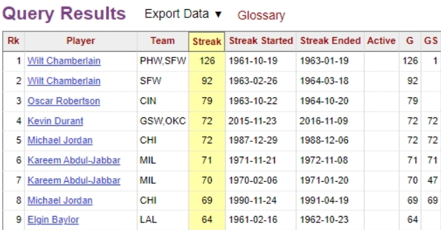 距離NBA名宿邁克爾-喬丹與凱文-杜蘭特連續(xù)72場(chǎng)20+還差8場(chǎng)。