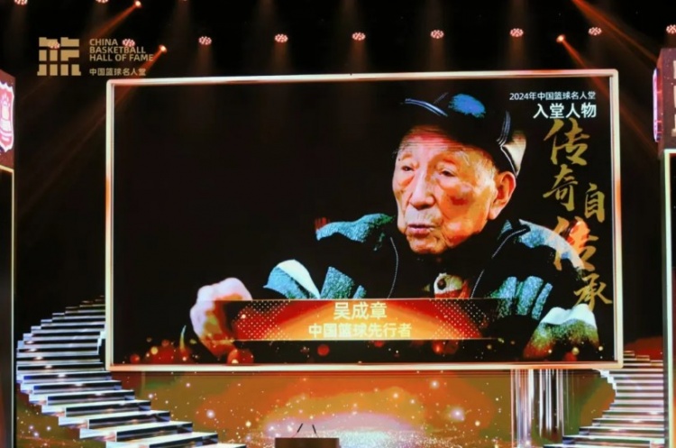 現(xiàn)年101歲的吳成章老人是李震中先生1948年奧運(yùn)會(huì)的隊(duì)友,雖然無法親臨現(xiàn)場(chǎng),他仍通過視頻表達(dá)了自己進(jìn)入名人堂的喜悅。吳老之子吳忻水代父親領(lǐng)取名人堂徽章,并分享了他們之間的“父子籃球”軼事。