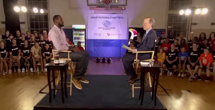 詹姆斯說:“一切都始于《決定》。《決定》讓我坐下來思考。因?yàn)橛幸恍┤?,《決定》的想法被提議給我的時候,說是讓我在電視上做一件很酷的事,有點(diǎn)像宣布大學(xué)去向的節(jié)目風(fēng)格。我說過我從未上過大學(xué),我就覺得,‘這會很酷,做出決定,戴上帽子。同時也能募捐到250萬美元善款去做好事。而且這樣也很酷。’”