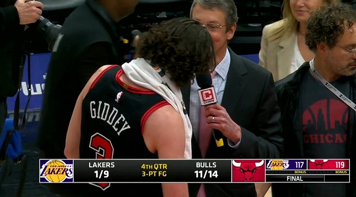 末節(jié),公牛全隊手感火熱,三分球頻頻命中,一步一步將比分推進(jìn),反觀湖人遲遲未在三分線外找到手感。最后時刻,在12.9秒的時間里公牛更是連中三記3分,其中基迪在最后時刻于Logo位置壓哨三分絕殺湖人。