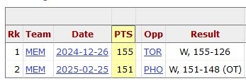 據(jù)統(tǒng)計(jì),162分是本賽季球隊(duì)單場得分的新高,此前紀(jì)錄是灰熊的155分。2024年12月27日,灰熊155-126大勝猛龍。