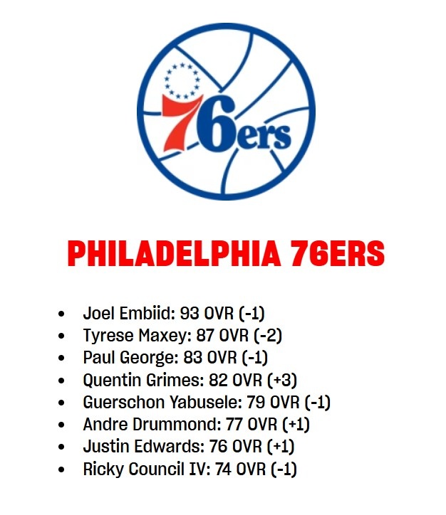 3月7日訊 NBA2K官方更新了各隊球員的能力值,76人球員變化情況如下:
