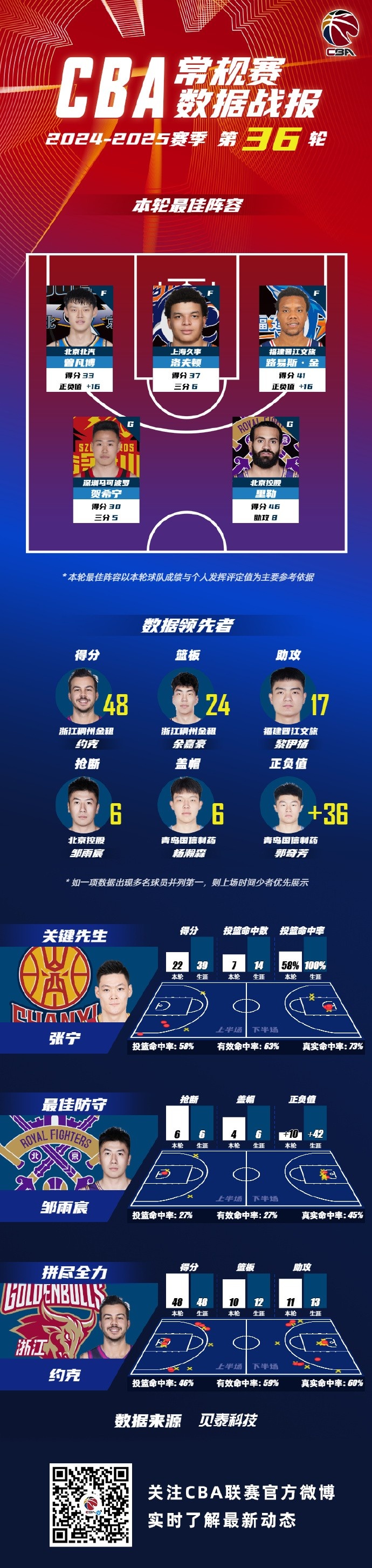 常規(guī)賽第36輪最佳陣容:曾凡博&洛夫頓&路易斯-金&賀希寧&里勒