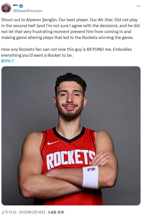 賽后,火箭的一位球迷評(píng)論道:“向申京致敬。他是我們最好的球員,我們的全明星。盡管下半場(chǎng)沒有上場(chǎng)(我對(duì)此決定并不完全贊同),但他并沒有讓這一令人沮喪的時(shí)刻影響自己,他在關(guān)鍵時(shí)刻挺身而出,為火箭贏得了比賽。任何火箭球迷如果不愛這個(gè)小伙子,那真是難以理解。他完美地展現(xiàn)了火箭球員應(yīng)有的所有品質(zhì)。”