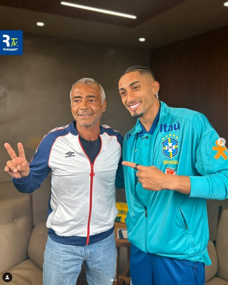 羅德里戈&拉菲尼亞&恩德里克做客電視節(jié)目,與羅馬里奧合影留念