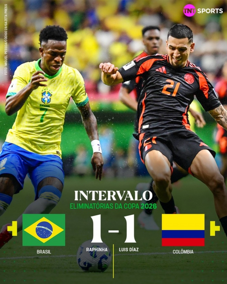 3月21日訊 北京時間世預賽南美區(qū)第13輪,巴西主場對陣哥倫比亞。上半場,維尼修斯開場3分鐘造點,拉菲尼亞點射破門,迪亞斯扳平比分。上半場巴西1-1哥倫比亞。