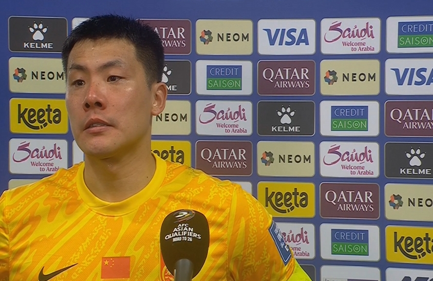 國(guó)足0-1不敵沙特,賽后王大雷接受采訪。