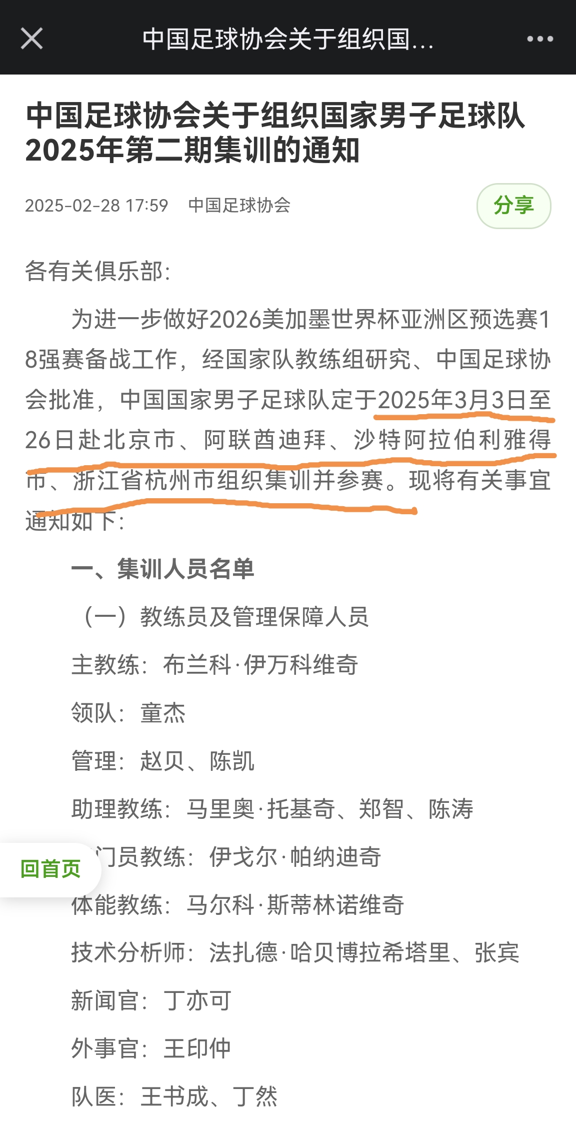 中國(guó)足協(xié)在公告中明確指出將進(jìn)行為期23天的集訓(xùn)+參賽