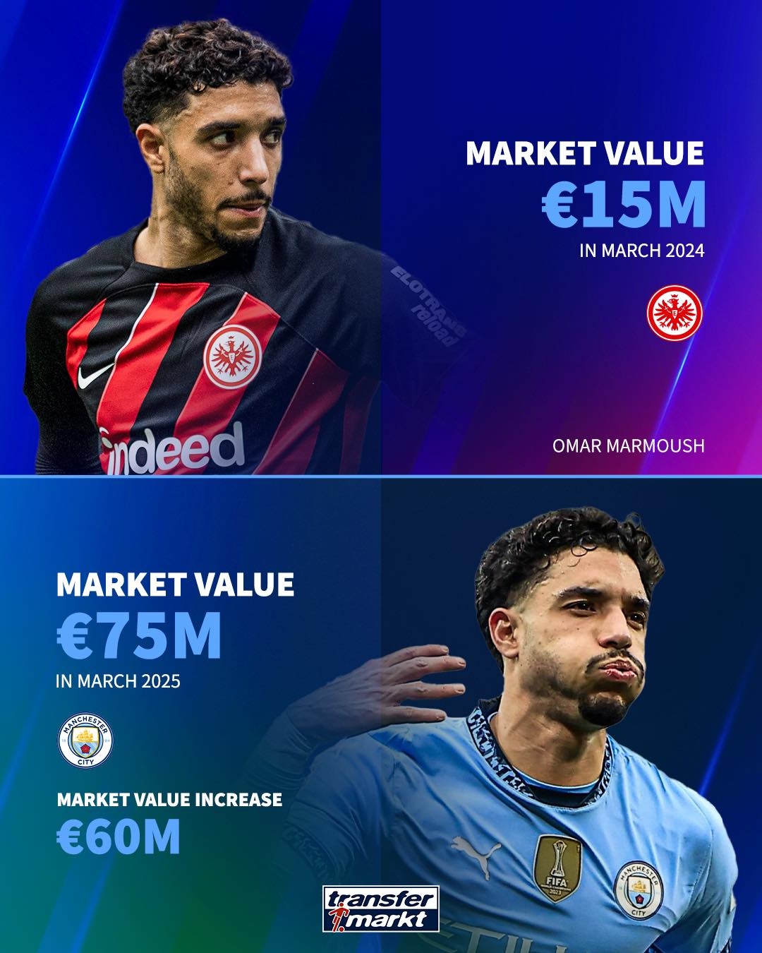 英超球員過去1年身價(jià)漲幅:帕爾默暴漲8500萬歐 馬爾穆什漲6000萬