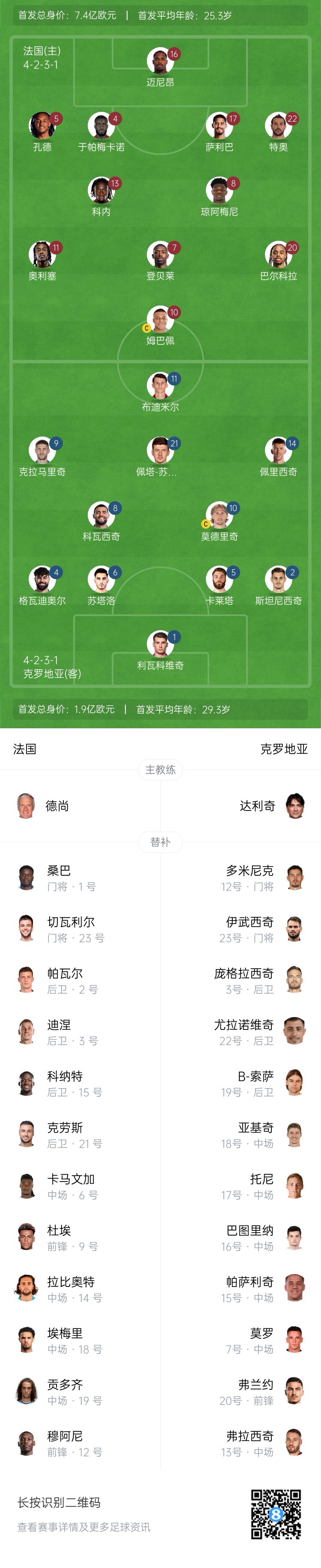 法國(guó)vs克羅地亞首發(fā):姆巴佩、登貝萊、巴爾科拉先發(fā),魔笛出戰(zhàn)