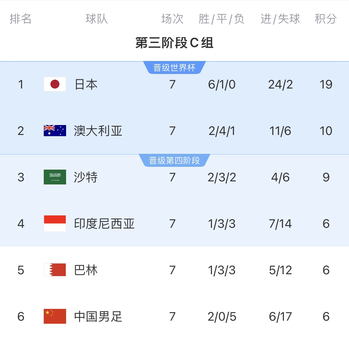 (注:澳大利亞如果戰(zhàn)勝中國(guó),積分13,沙特輸給日本積分9;接下來(lái)的兩場(chǎng)哪怕澳洲也輸給日本,末輪只要對(duì)沙特保持不敗即可直通世界杯。在沙特保持第3的情況下,印尼、巴林誰(shuí)拿分,都會(huì)卡住國(guó)足上升爭(zhēng)四的路線)