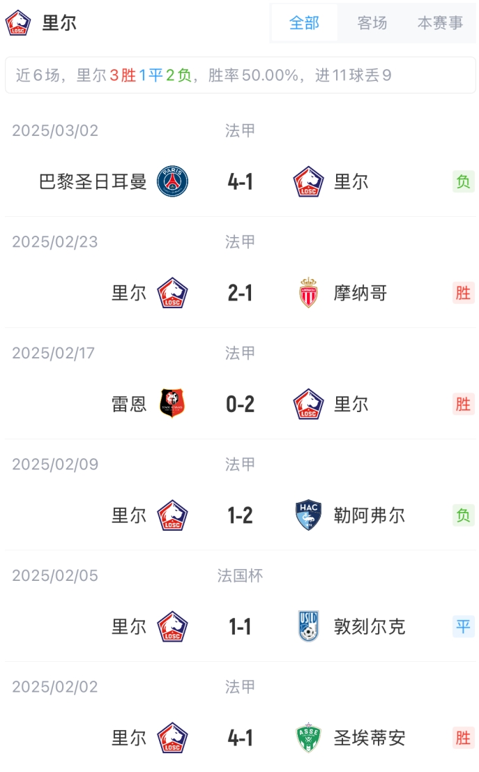 里爾首發(fā):30-切瓦利爾、31-伊斯梅利、4-亞歷桑德羅、18-迪亞克特、12-穆尼耶、32-布阿迪、21-安德烈、17-穆卡烏、29-伊桑-姆巴佩、7-哈拉爾德松、9-戴維