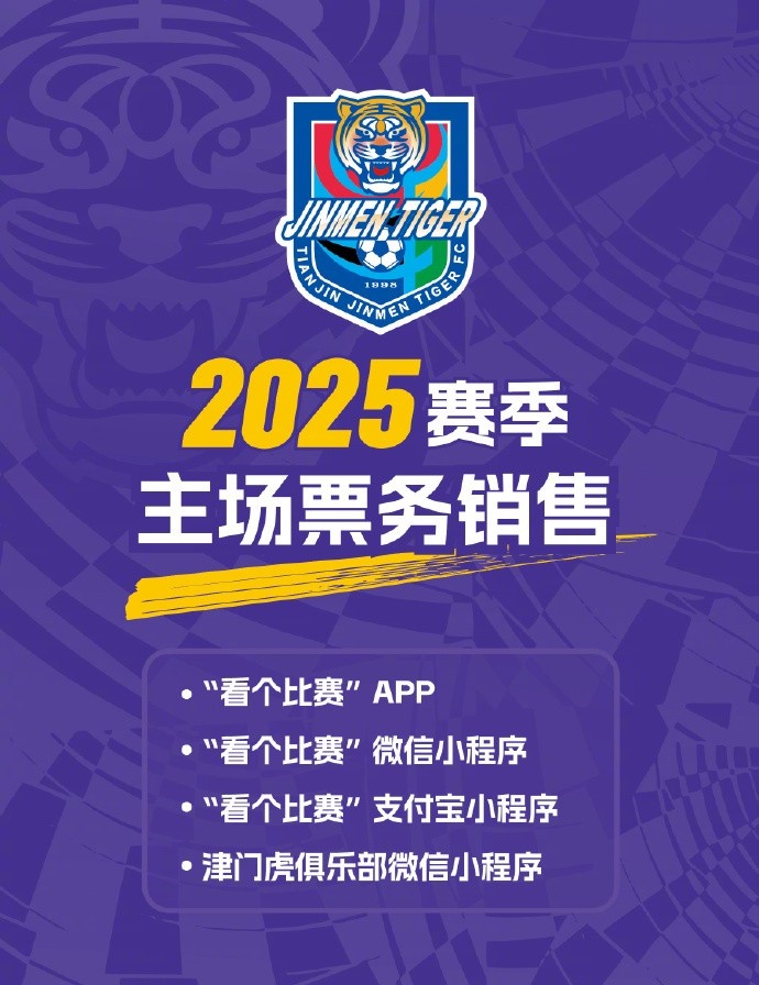 開售提示! 2025華潤飲料中超聯(lián)賽第4輪天津津門虎VS北京國安的比賽將于今晚20:00開售!