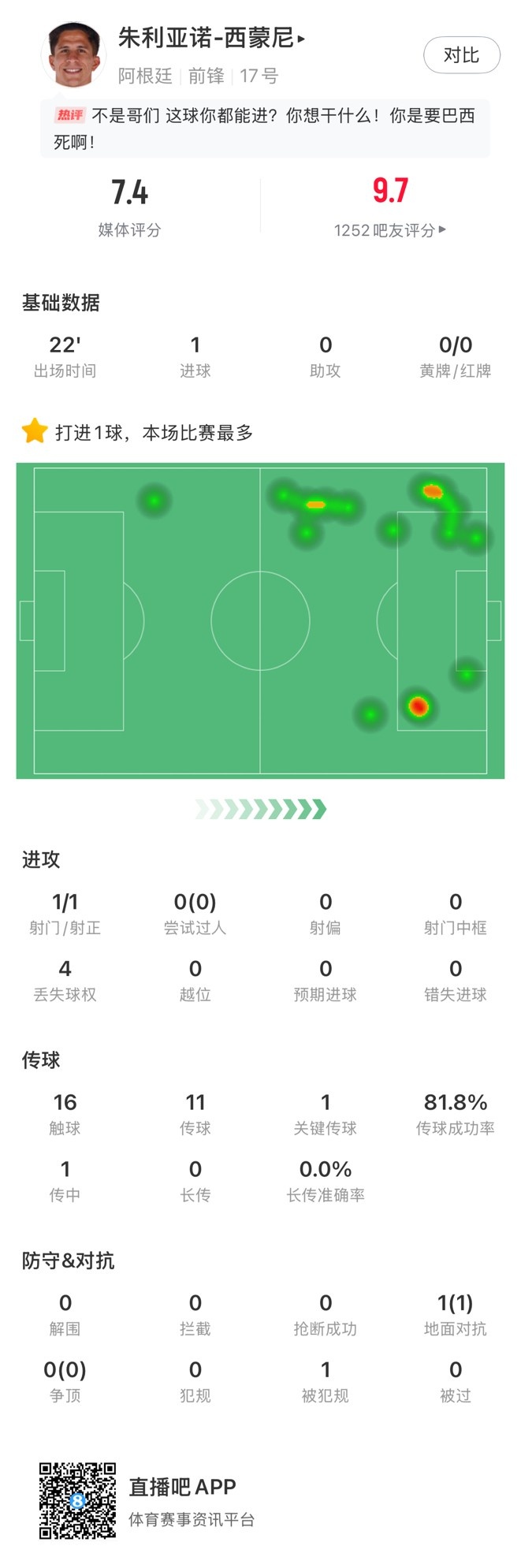 虎父無犬子!小西蒙尼替補出場3分鐘小角度破門,賽后獲評7.4分