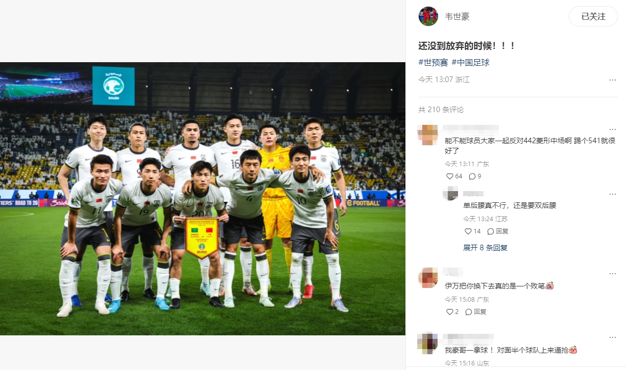 - 國(guó)足遭遇三連敗,韋世豪:還沒(méi)到放棄的時(shí)候!??!