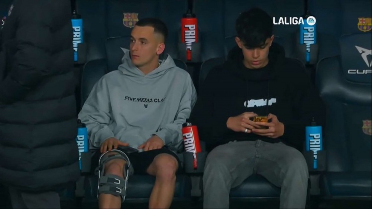 巴薩中場(chǎng)卡薩多本月被確認(rèn)右膝外側(cè)韌帶部分撕裂,接受保守治療,預(yù)計(jì)將傷缺兩個(gè)月,他與另一位傷員伯納爾現(xiàn)場(chǎng)觀看了這場(chǎng)比賽,卡薩多更換發(fā)型、佩戴護(hù)具觀賽。