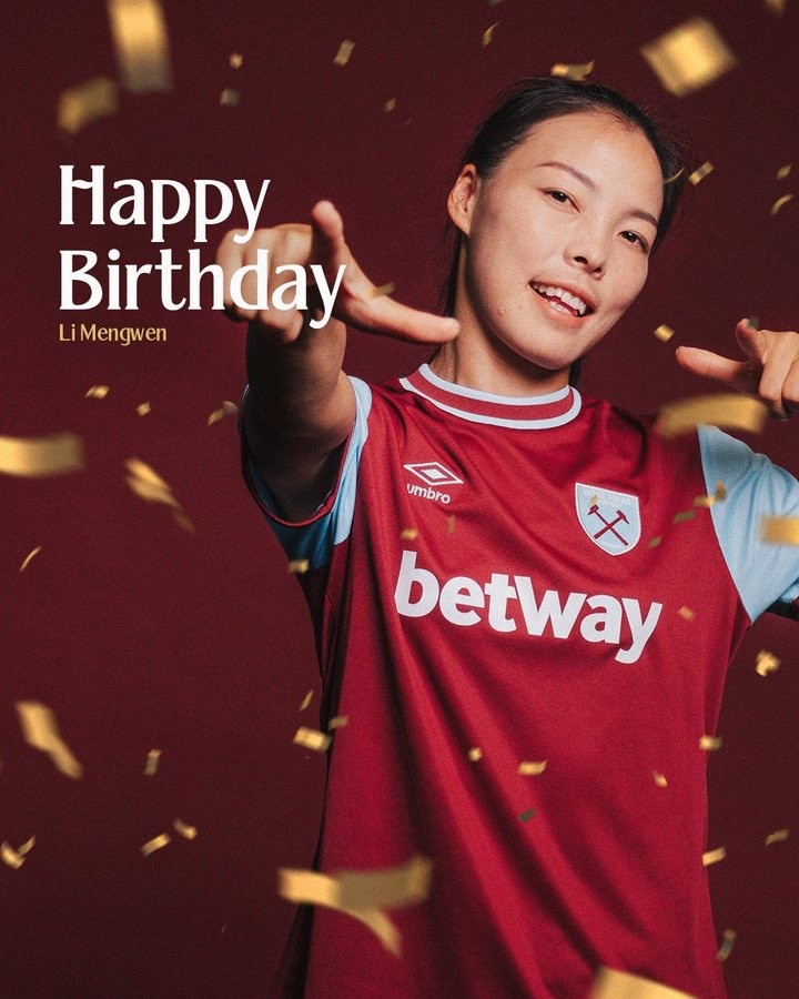 3月28日訊 今天,西漢姆聯(lián)女足官方社媒發(fā)布海報,為李夢雯的生日送上祝福。