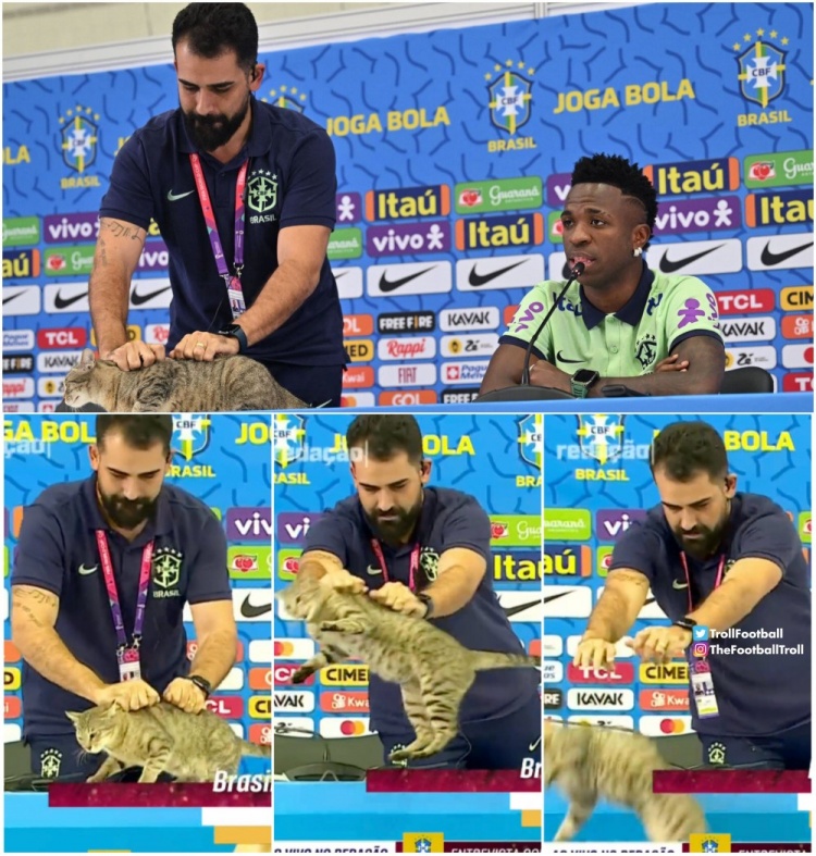 這是2022年12月8日,維尼修斯參加新聞發(fā)布會(huì),一只貓貓被新聞官無(wú)情扔走~自此巴西一蹶不振……