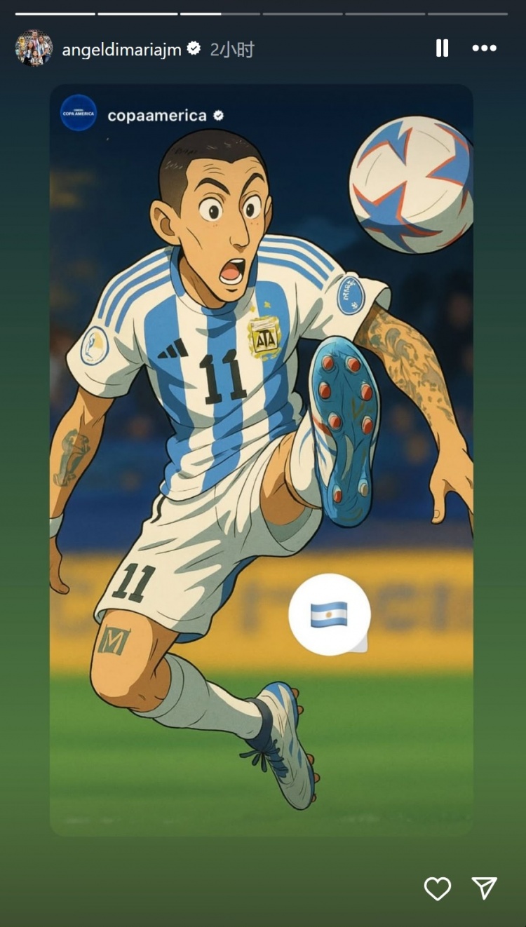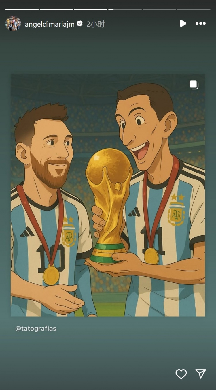 3月29日訊 迪馬利亞更新社媒動態(tài),轉(zhuǎn)發(fā)與梅西手捧大力神杯的AI漫畫圖片。