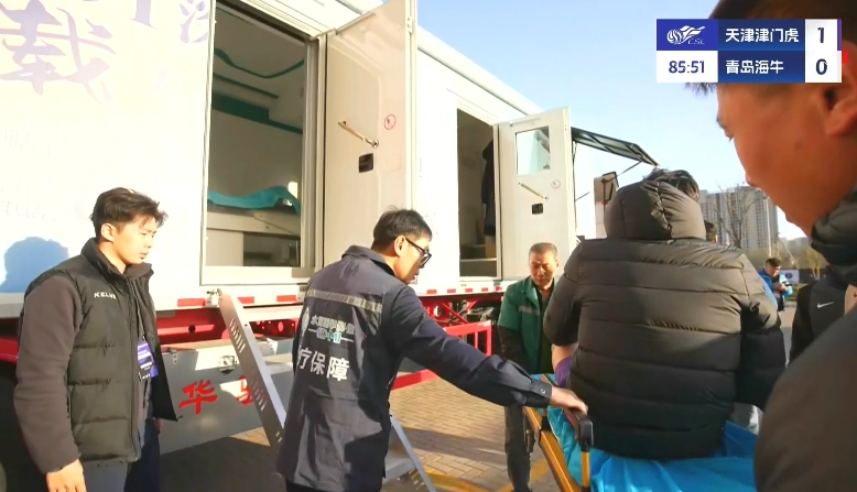 比賽第75分鐘,薩爾瓦多被林創(chuàng)益飛鏟后傷退,轉(zhuǎn)播鏡頭直接切到場(chǎng)外醫(yī)療車,薩爾瓦多接受CT檢查。