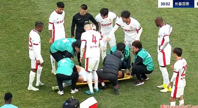 第38分鐘,譚龍拼搶中受傷倒地被擔(dān)架抬出場外,同時(shí)李申圓受傷堅(jiān)持不住回更衣室。↓