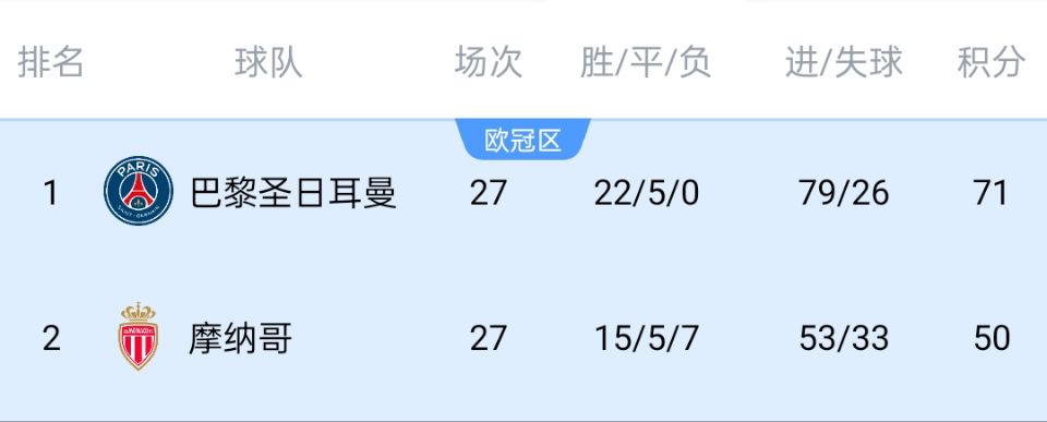 積分榜上,巴黎已經(jīng)領(lǐng)先摩納哥21分,幾乎已經(jīng)把聯(lián)賽冠軍放進(jìn)囊中。這也意味著巴黎之后可全力沖刺歐冠,不必為聯(lián)賽過多分心。