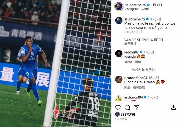 “又是一個令人難以置信的夜晚。3分,本賽季個人再進(jìn)1球!加油,申花!”