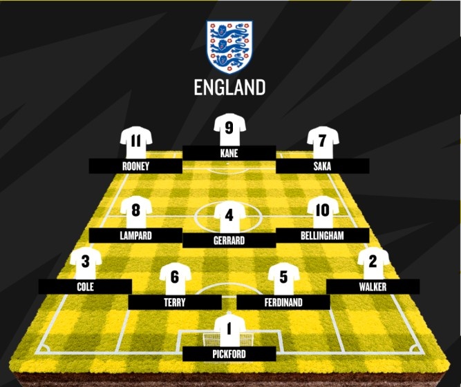 以下為阿邦拉霍選出的英格蘭隊史最佳陣: