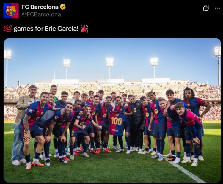 - 埃里克-加西亞迎巴薩百場(chǎng)里程碑,獲贈(zèng)紀(jì)念球衣&與全隊(duì)合影留念