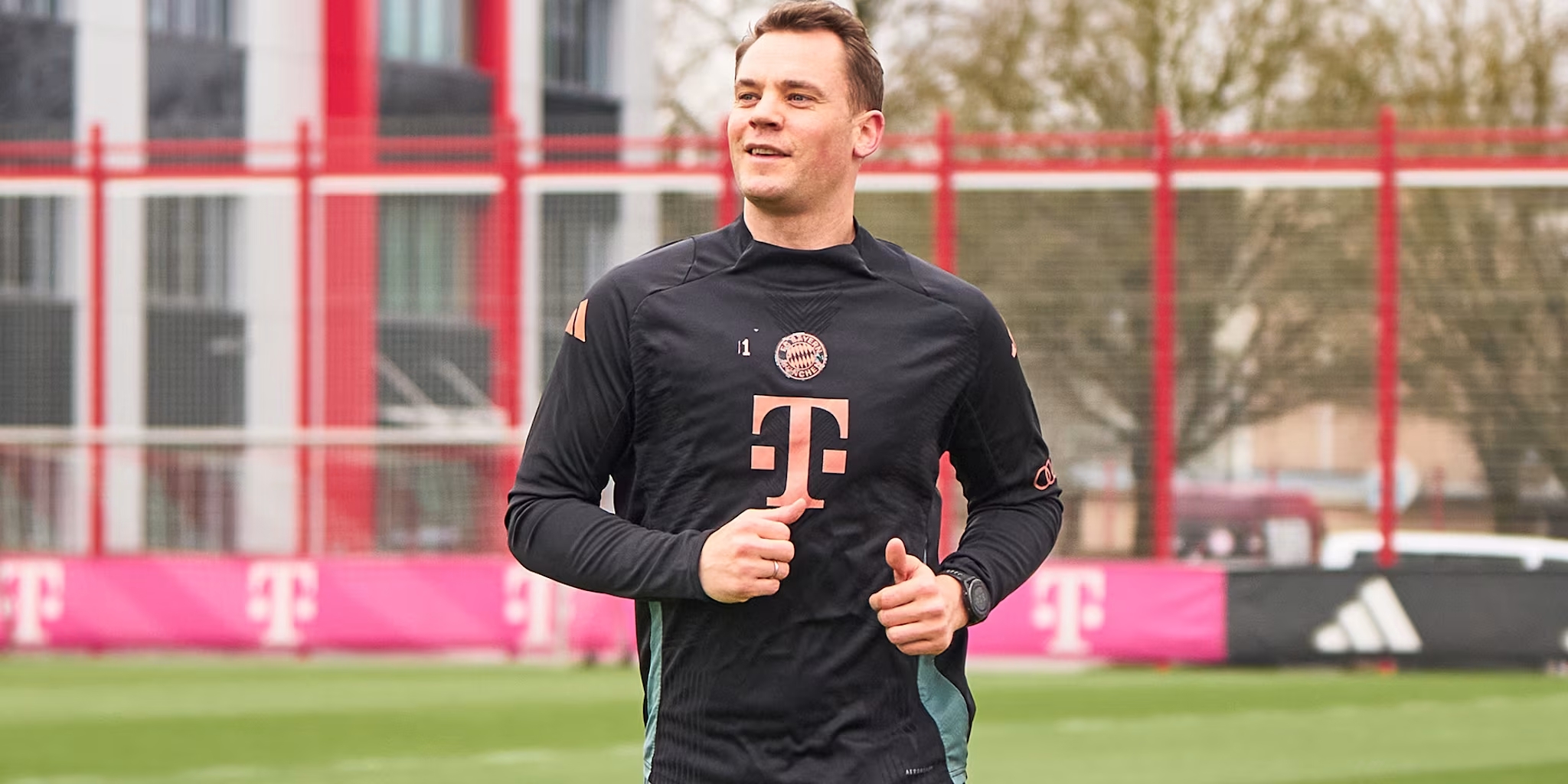39歲的諾伊爾最近因肌肉問題不得不停止訓練。他在對陣勒沃庫森的歐冠1/4決賽首回合比賽中因慶祝進球右小腿肌肉纖維撕裂,不得不被替換下場。在三月底,已經(jīng)恢復訓練的諾伊爾傷勢出現(xiàn)反復,不得不再次停止訓練。