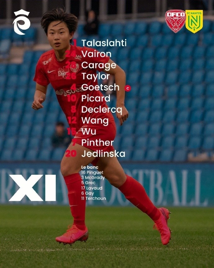 法甲第19輪第戎女足主場3-0戰(zhàn)勝南特女足,吳澄舒、王妍雯首發(fā)出場,第17分鐘,吳澄舒接隊(duì)友左路傳中,頭球破門,首開紀(jì)錄,連續(xù)兩場有進(jìn)球入賬。上輪聯(lián)賽第戎客場2-0戰(zhàn)勝勒阿弗爾女足,吳澄舒也斬獲一粒進(jìn)球。王妍雯打滿90分鐘,傷停補(bǔ)時(shí)階段被隊(duì)友換下。