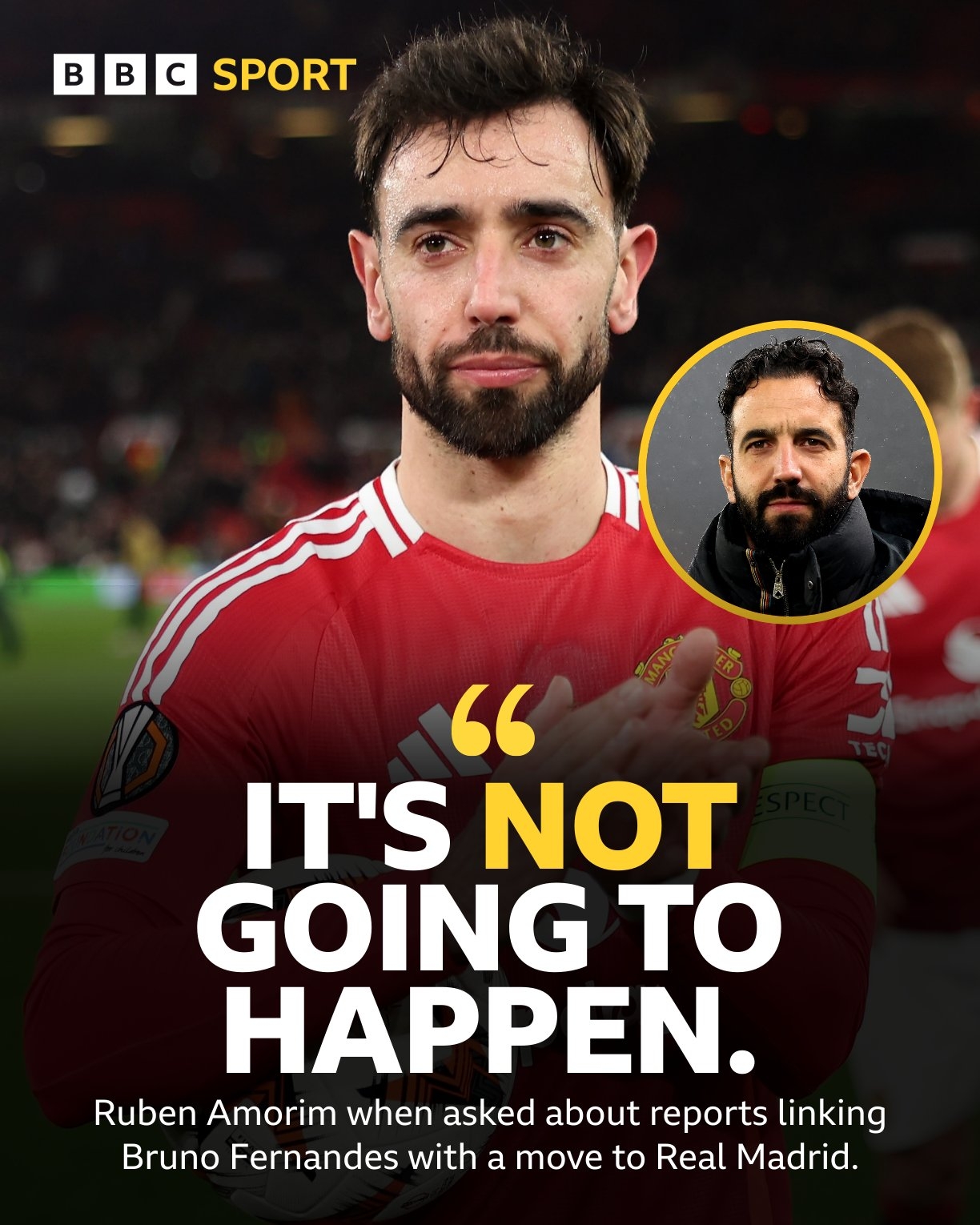 當(dāng)被問及周末媒體曝出的“皇馬有意B費”消息時,阿莫林回應(yīng)道:“不可能,這不會發(fā)生。他哪都不會去,我已經(jīng)告訴過他了。”