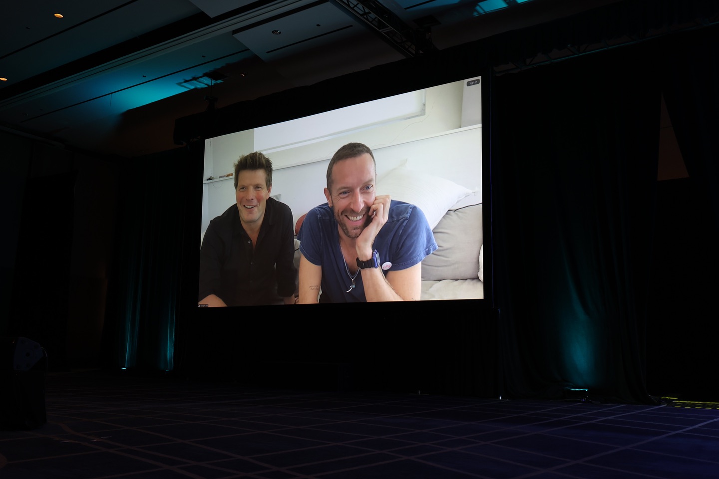 我們還要感謝酷玩樂隊的克里斯-馬?。ㄖ鞒┖头茽?哈維(經(jīng)理人),他們將與FIFA合作,確定世界杯決賽中場表演以及在時代廣場表演的藝術家名單。