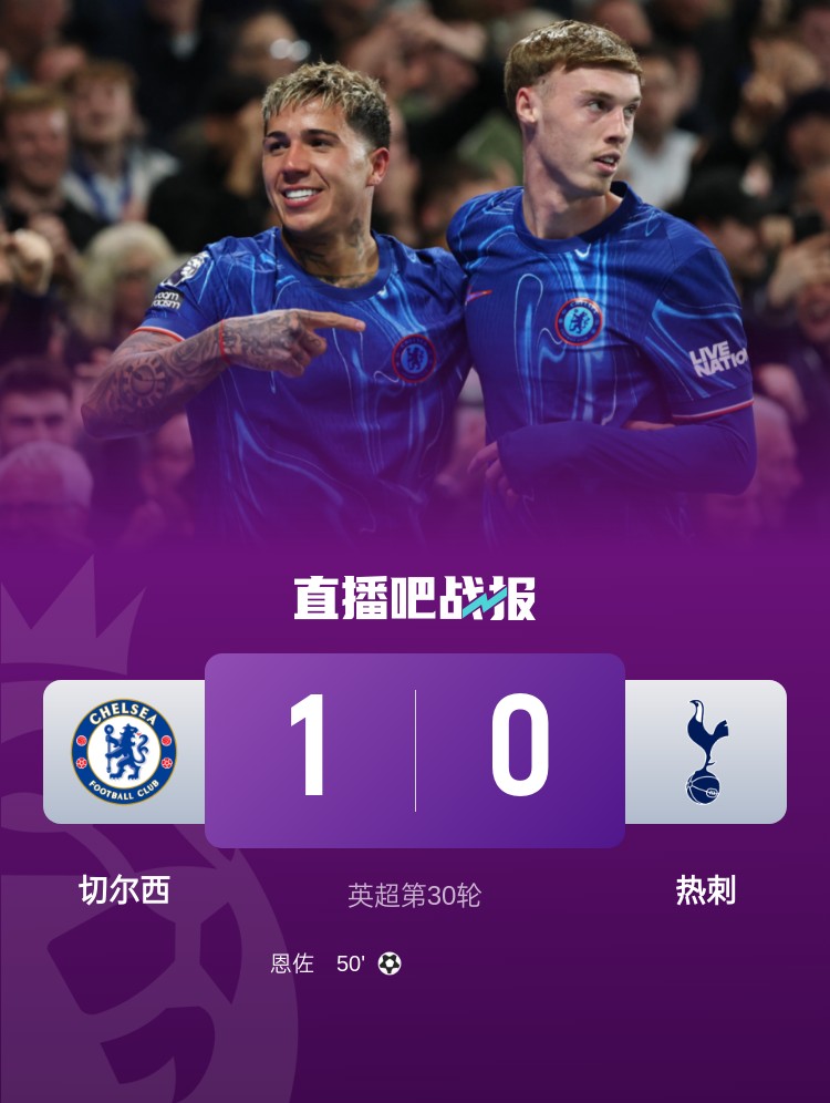 本輪英超焦點(diǎn)戰(zhàn),切爾西1-0擊敗熱刺,恩佐打入全場(chǎng)唯一進(jìn)球。
