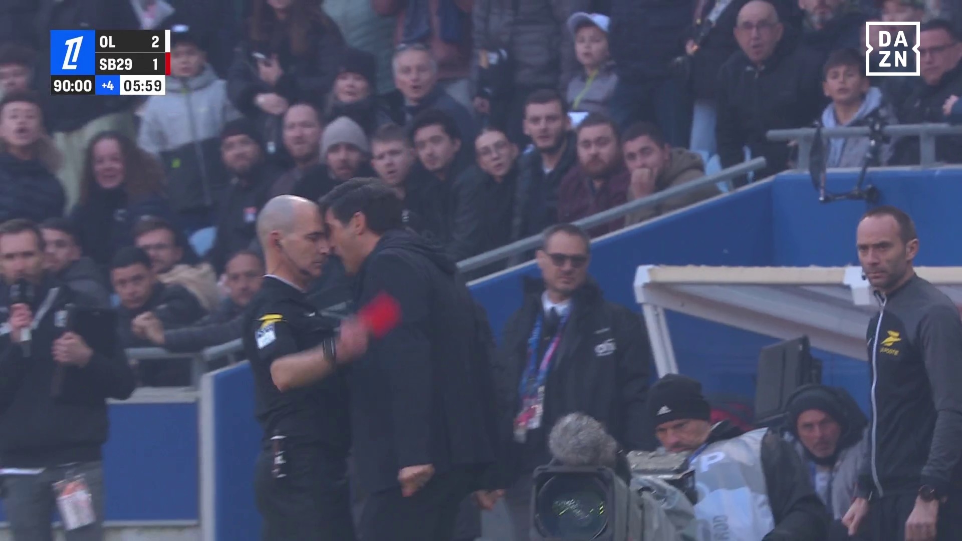 3月6日訊 法甲第24輪,里昂2-1戰(zhàn)勝布雷斯特,比賽中里昂主教練豐塞卡被出示直紅罰下,在被罰下后,他非常憤怒的與當(dāng)值主裁米洛特頂牛,并且怒噴裁判。