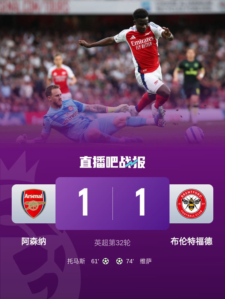 早報(bào):阿森納1-1布倫特福德,利物浦再拿9分即鎖定冠軍