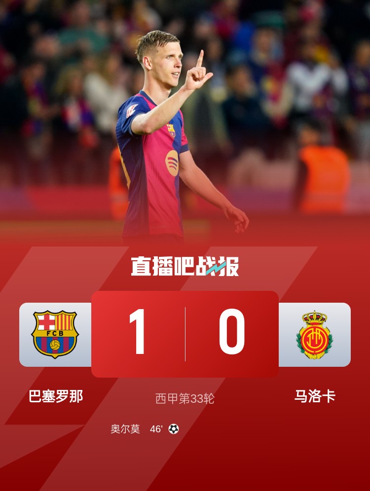 西甲第33輪,巴薩1-0馬洛卡,聯(lián)賽三連勝。上半場(chǎng),奧爾莫中柱,巴薩轟24腳射門依然未能進(jìn)球;下半場(chǎng),埃里克-加西亞助攻奧爾莫破門,亞馬爾失單刀。