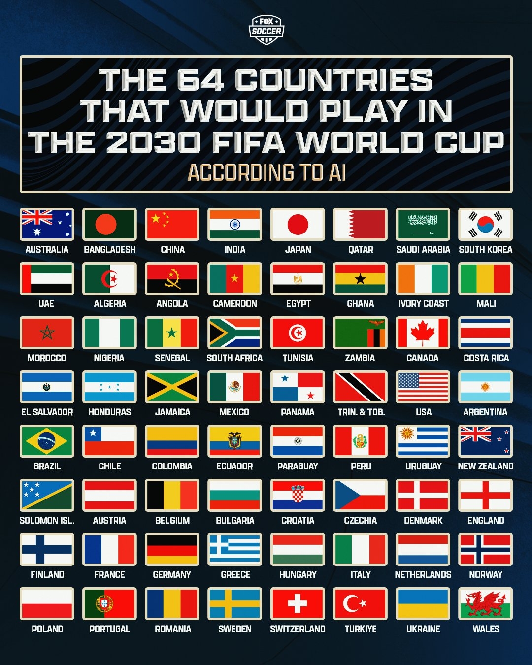 ??怂棺闱虬l(fā)文,表示要求ChatGPT列出如果2030世界杯擴(kuò)軍64支隊(duì)后所有的64個(gè)國家。同時(shí)??怂箤懙溃耗阌X得這種形式是個(gè)好主意嗎?