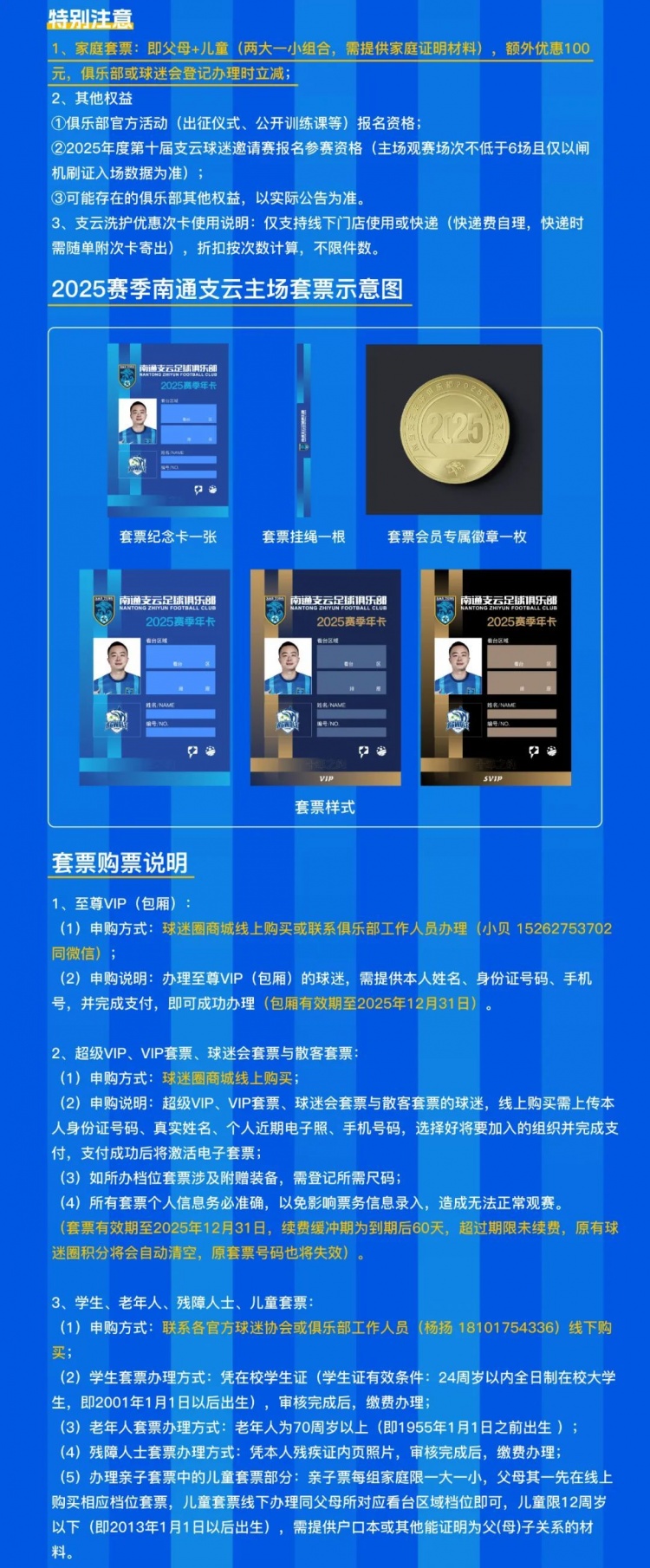 ?(1)2025賽季南通支云足球俱樂部主場套票先購先得,售罄為止;