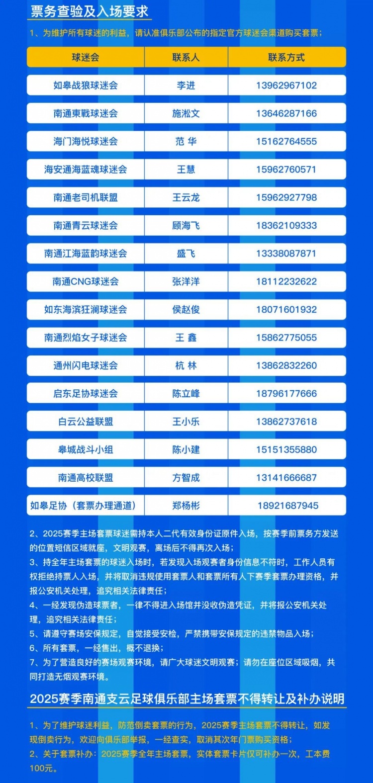?五、2025賽季南通支云足球俱樂部主場套票不得轉(zhuǎn)讓及補(bǔ)辦說明: