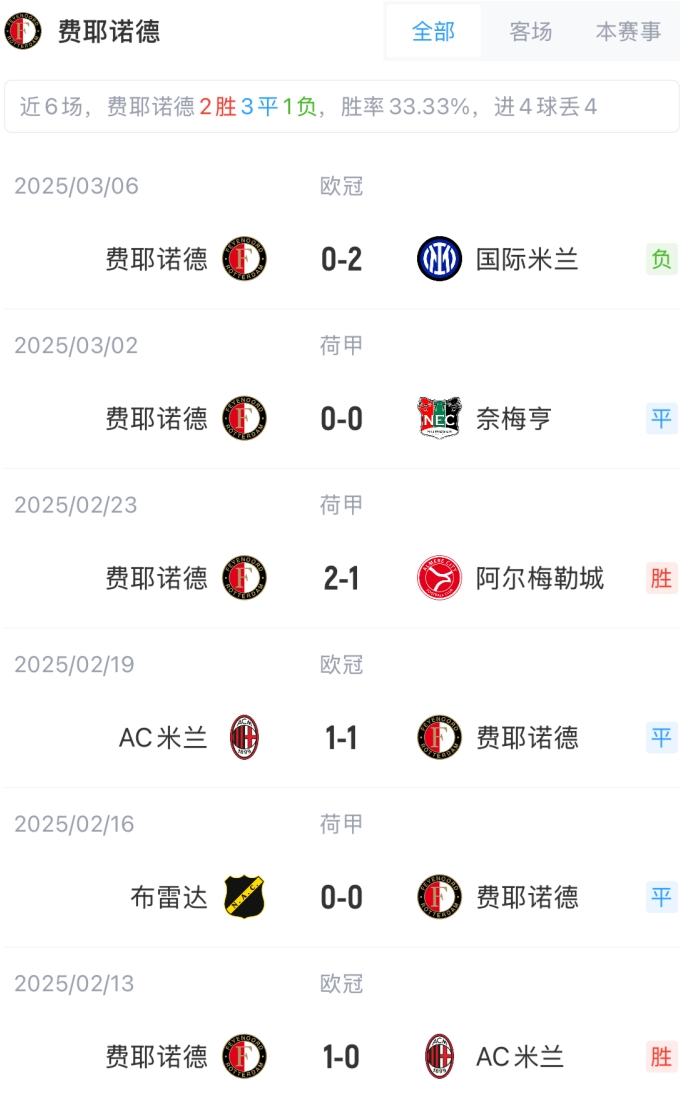 費(fèi)耶諾德替補(bǔ):21-安德列夫、64-伊斯梅爾-卡、15-法昆多-岡薩雷斯、18-特勞納、20-米切爾、43-普拉格、48-吉斯托夫、10-贊德、68-蒂斯-克萊耶維爾德、49-澤皮克諾
