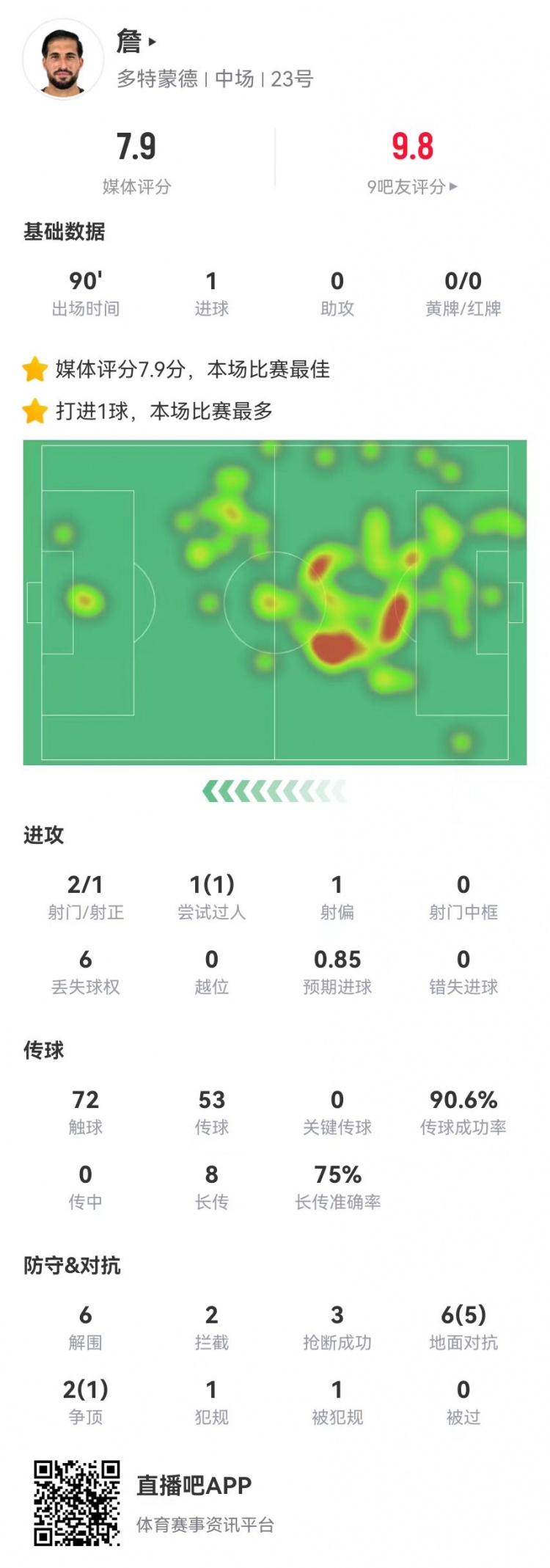 官方:埃姆雷-詹當(dāng)選全場最佳,點(diǎn)射扳平+6解圍2攔截3搶斷