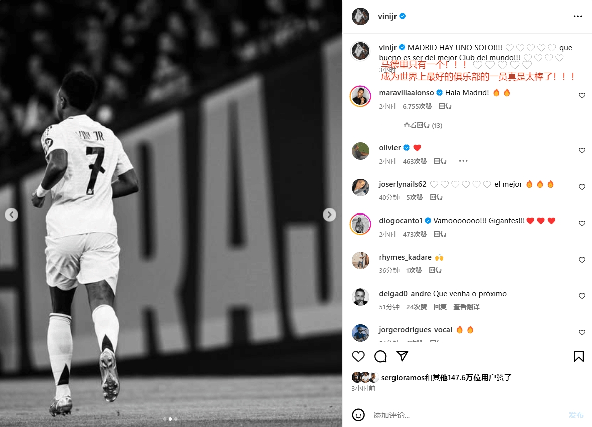 賽后維尼修斯在社媒連續(xù)更新4條動(dòng)態(tài)(推特3條,ins1條)。
