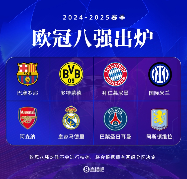 ??歐冠8強(qiáng)對(duì)陣:槍手vs皇馬|拜仁vs國米|巴薩vs多特|巴黎vs維拉