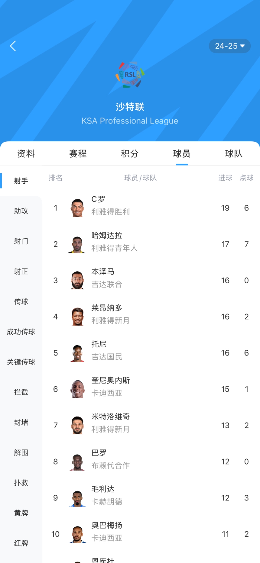 沙特聯(lián)射手榜,40歲C羅19球領(lǐng)跑,37歲本澤馬遭遇4輪球荒,16球排第三,托尼16球、米特洛維奇13球、奧巴梅揚11球。