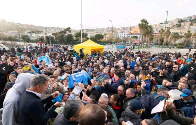 這兩位那不勒斯傳奇也拿著自己球員時代的照片來到馬拉多納球場外,他們被球迷包圍并為球迷簽名。