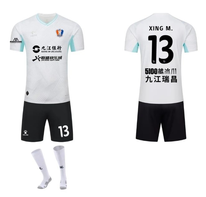 第二客場戰(zhàn)袍以皓月白為主色調,搭配淺藍色細節(jié)及黑色比賽短褲,簡潔大氣,沉穩(wěn)中透露著鋒芒。球衣設計靈感來源于江西廬山著名的云霧景觀,寓意著球隊在客場比賽中披荊斬棘,乘風破浪。